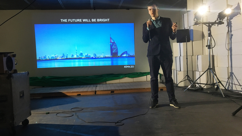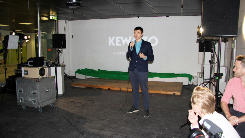 Artem Kuchukov, CEO bei der KEWAZO GbR, stellte anschließend das von seinem Unternehmen entwickelte intelligente Roboter Gerüstbau System vor. Das System bietet einen kosteneffizienten und sicheren Gerüstbautransport von Gerüstteilen. Die Lösung adressiert den Fachkräftemangel und soll Montagekosten um mindestens 30 % reduzieren.