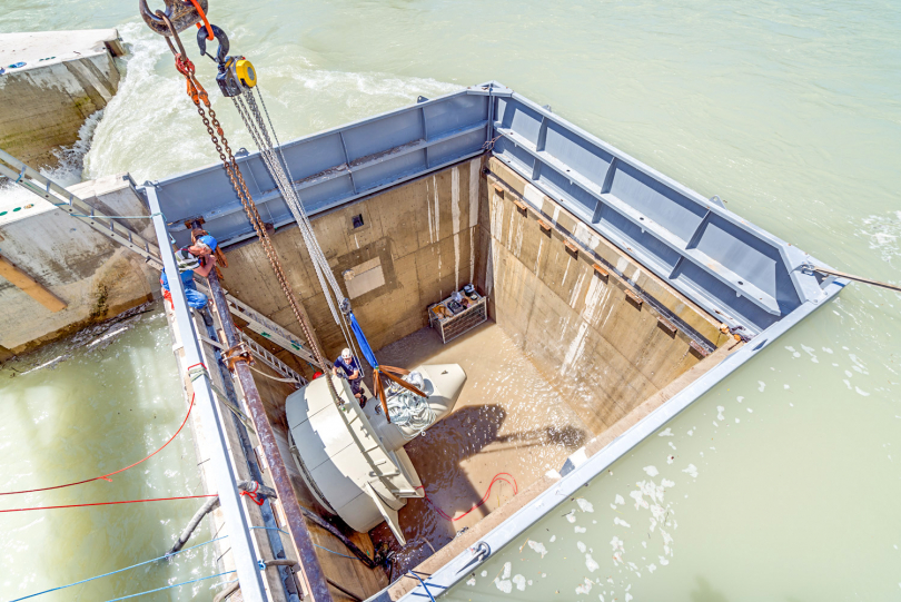 Wasserkraftwerke tragen mit erneuerbarer Energie zum Klimaschutz bei, verursachen aber gleichzeitig ökologische Probleme: Bei herkömmlichen Flusskraftwerken wird das Wasser durch ein Maschinenhaus umgeleitet, um die Turbine anzutreiben. Von der Strömung können Fische zum Kraftwerk getrieben und an Turbine und Gittern tödlich verletzt werden. Natürliche Lebensräume, Fischwanderwege und Uferlandschaft werden geschädigt. Die ökologischen Vorgaben für neue Anlagen lassen sich in Deutschland so kaum mehr erfüllen.