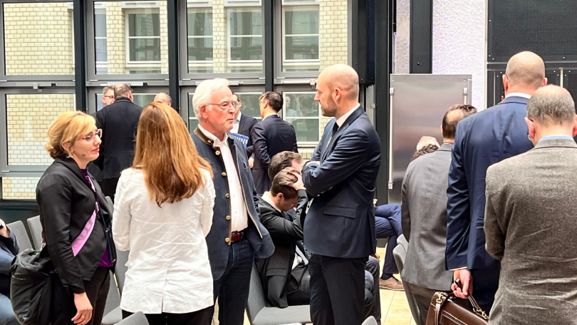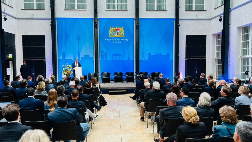 „Nachhaltiges Bauen und Kostensenkungen – Ein Spannungsverhältnis?“ Unter diesem Motto hat Bayerns Bauminister Christian Bernreiter am 11. April 2024 Experten aus Politik, Wissenschaft und Praxis zu einem Parlamentarischen Abend in die Bayerische Vertretung in Berlin geladen. „Wir haben uns ambitionierte Klimaziele gegeben, die uns auch im Bauwesen vor Herausforderungen stellen“, so Minister Bernreiter. Die Bayerische Ingenieurekammer-Bau war mit Präsident Prof. Dr. Norbert Gebbeken auf dem Podium vertreten.