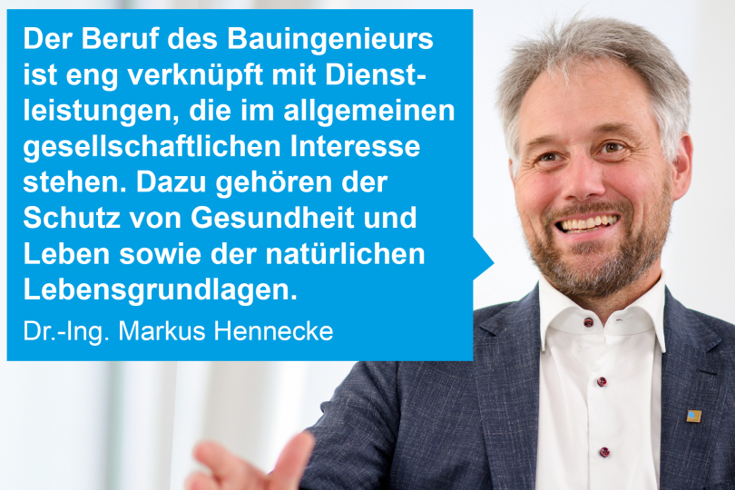 Die Ingenieurgesetze der Bundesländer machen aus gutem Grund sehr konkrete Vorgaben, welcher Studienumfang und -inhalt gelehrt werden muss, damit jemand die Berufsbezeichnung Bauingenieur führen darf. Der Beruf des Bauingenieurs ist eng verknüpft mit Dienstleistungen, die im allgemeinen gesellschaftlichen Interesse stehen. Dazu gehören der Schutz von Gesundheit und Leben sowie der natürlichen Lebensgrundlagen.