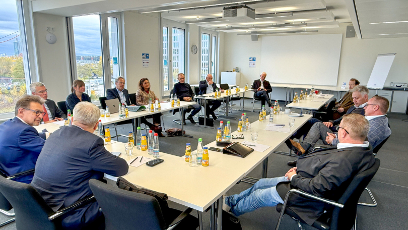Im Fokus der gemeinsamen Vorstandssitzung der Bayerischen Ingenieurekammer-Bau mit dem Landesverband Bayerischer Bauinnungen am 30. Oktober 2025 in der Kammer stand die vor allem die Digitalisierung in der Bauwirtschaft und das Vergabewesen. Darüber hinaus fand ein Erfahrungsaustausch zu KI-Projekten im Verband und der Kammer statt.