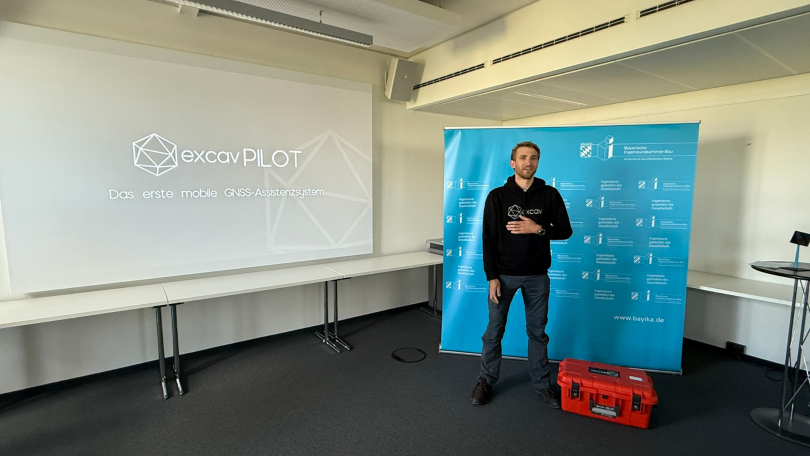 Das Erlanger Start-Up Excav UG hat mit dem Excav PILOT ein Assistenzsystem für Bagger entwickelt, das durch seine einfache, intuitive Bedienung besticht und maschinenunabhängig überall einsetzbar ist. Der Excav PILOT, welcher per Magnet leicht zu befestigen ist, teilt dem Baggerfahrer sofort mit, ob er korrekt gegraben hat. So werden Fehlgrabungen vermieden und Zeit beim Aushub eingespart.