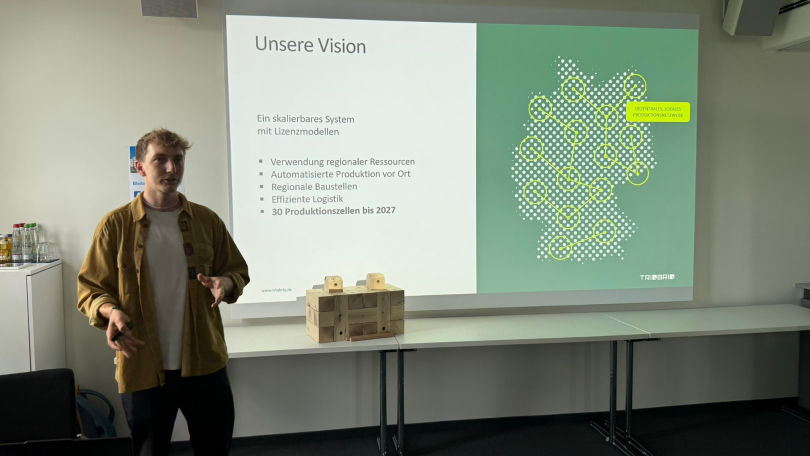 Abfall reduzieren, CO2-Ausstoß verringern, Baustoffe im Kreislauf halten – das sind die großen Aufgaben der Baubranche auf dem Weg zu nachhaltigerem Bauen. Der Gewinner des „Building Outside The Box“-Preises 2025, die TRIQBRIQ AG, zeigt, wie das konkret gehen kann. TRIQBRIQ stellt modulare Holzbausteine aus Alt- und Schadholz in unterschiedlichen Größen her, die flexibel kombinierbar sind. Die Module werden über Holzdübel fest miteinander verbunden, so dass das System komplett ohne Klebemittel auskommt.