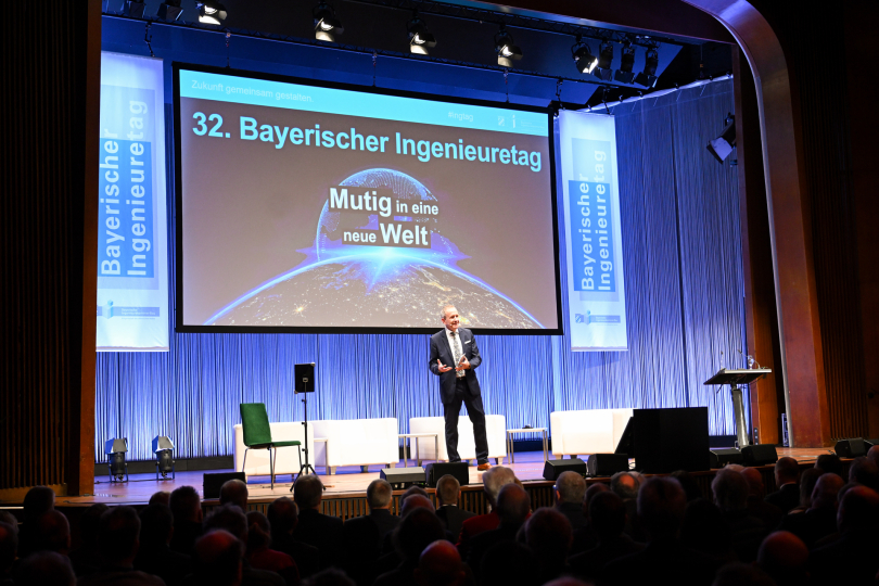 Der 32. Bayerische Ingenieuretag am 26. Januar 2024 in der Kongresshalle München stand unter dem Motto "Mutig in eine neue Welt". Mit Prof. Marcel Fratzscher, dem Präsidenten des Deutschen Instituts für Wirtschaftsforschung, dem Zukunfts-, Stadt- und Mobilitätsforscher Dr. Stefan Carsten und der Geschäftsführerin von VAUDE, Dr. Antje von Dewitz, gab es wieder hochkarätig besetzte Vorträge. Dr. Thomas Gruber, Amtschef im Bauministerium, hielt in Vertretung von Staatsminister Christian Bernreiter ein Grußwort. Sehen Sie hier den großen Foto- und Video-Rückblick.