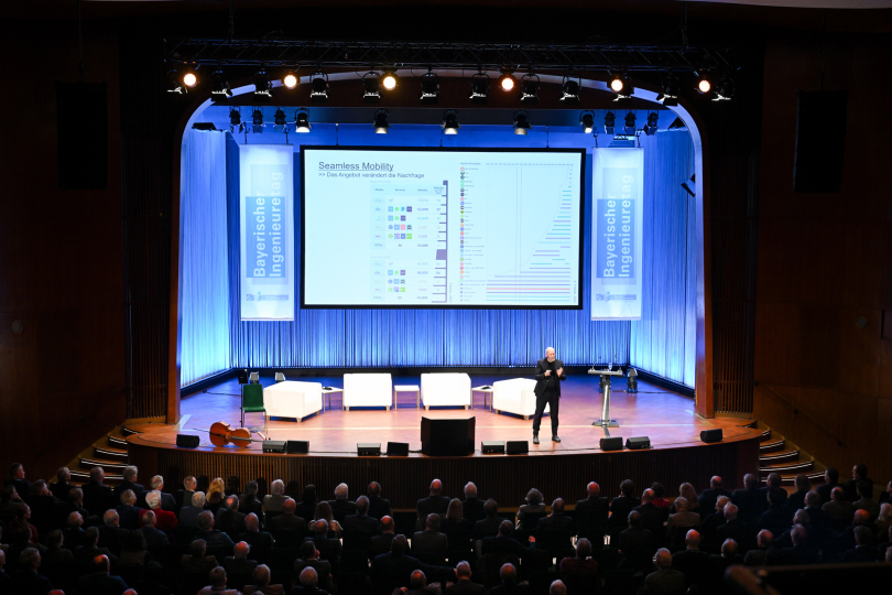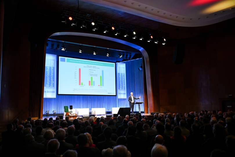Der 32. Bayerische Ingenieuretag thematisierte die großen Baustellen unserer Zeit auf der Suche nach Lösungen. Was muss sich (wirtschafts-)politisch ändern, um den Wandel erfolgreich zu gestalten? Welche Rahmenbedingungen brauchen wir und welche Rolle spielt das Wachstum dabei? Wie sieht die Mobilität der Zukunft aus? Welche Chancen und Herausforderungen stellen sich bei der Transformation zum nachhaltigen Unternehmen? Diesen Fragen widmete sich der 32. Bayerische Ingenieuretag am 26. Januar 2024 in der Alten Kongresshalle in München.